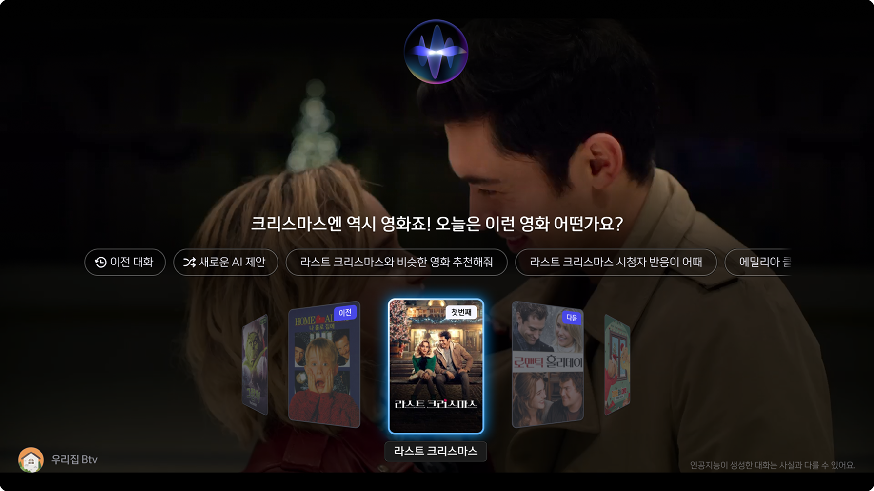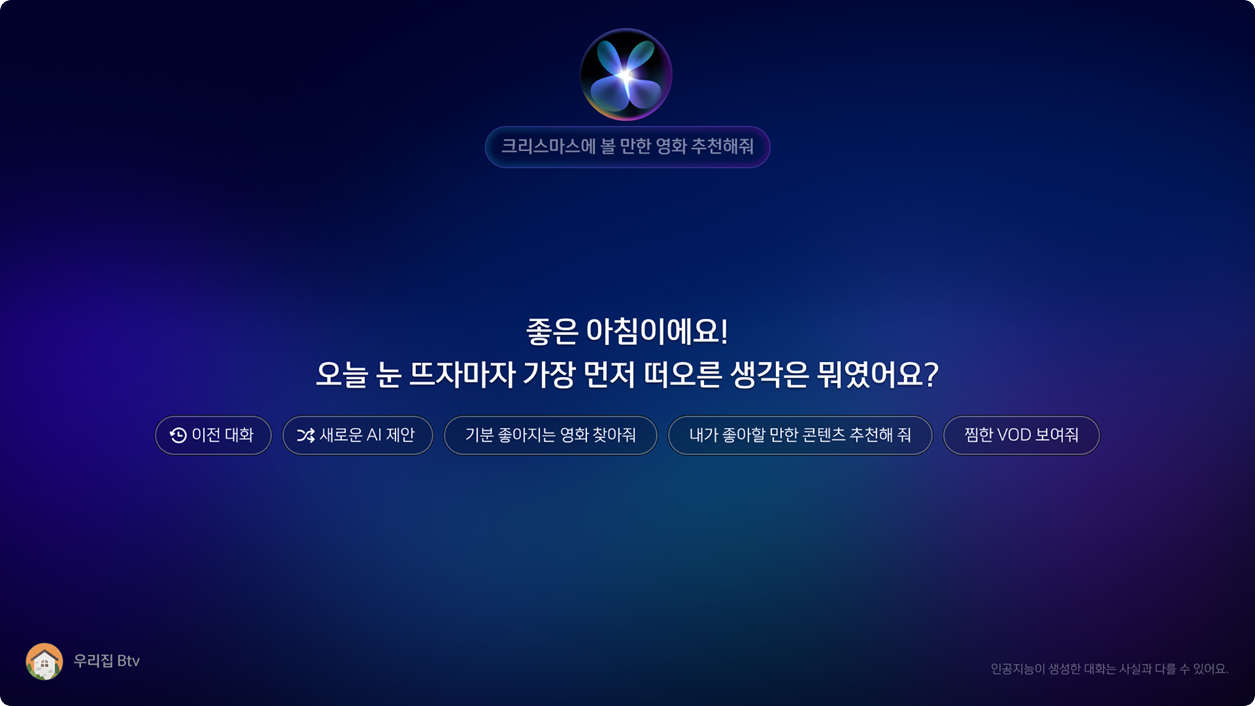 | Voice Chrome 문구 | "리모컨의 음성검색 버튼을 누르거나, '에이닷~' 하고 부른 후 질문해 주세요." |